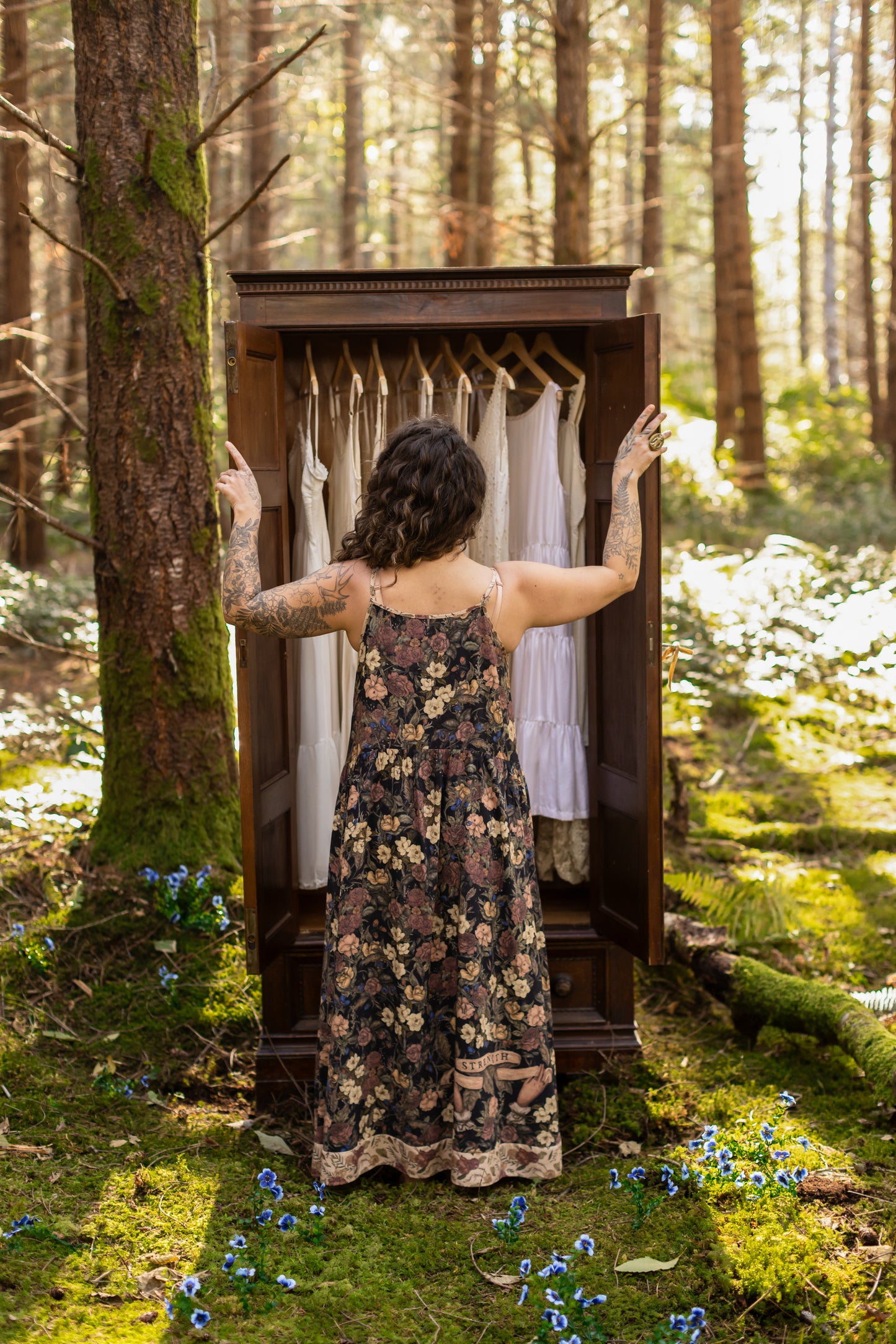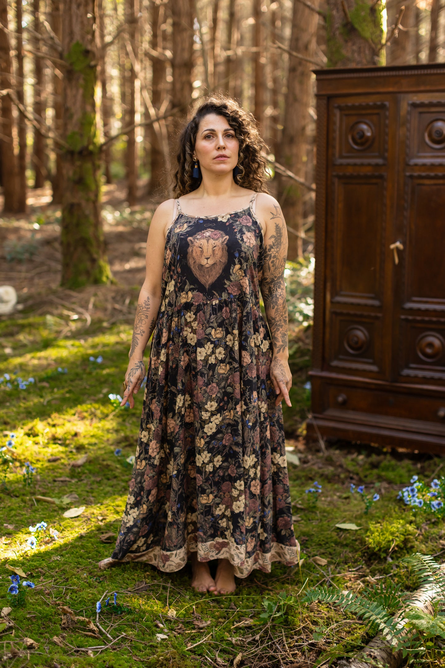The adjustable straps, oversized cut, and soft, flowy bamboo viscose make our Bohéme dresses a wardrobe staple for layering, running errands, dancing, lounging or napping — and they’re also a must-have for travel, wherever you roam. You can also wear this piece two ways, with lion on one side of the bodice and the florals on the other — depending on your mood.