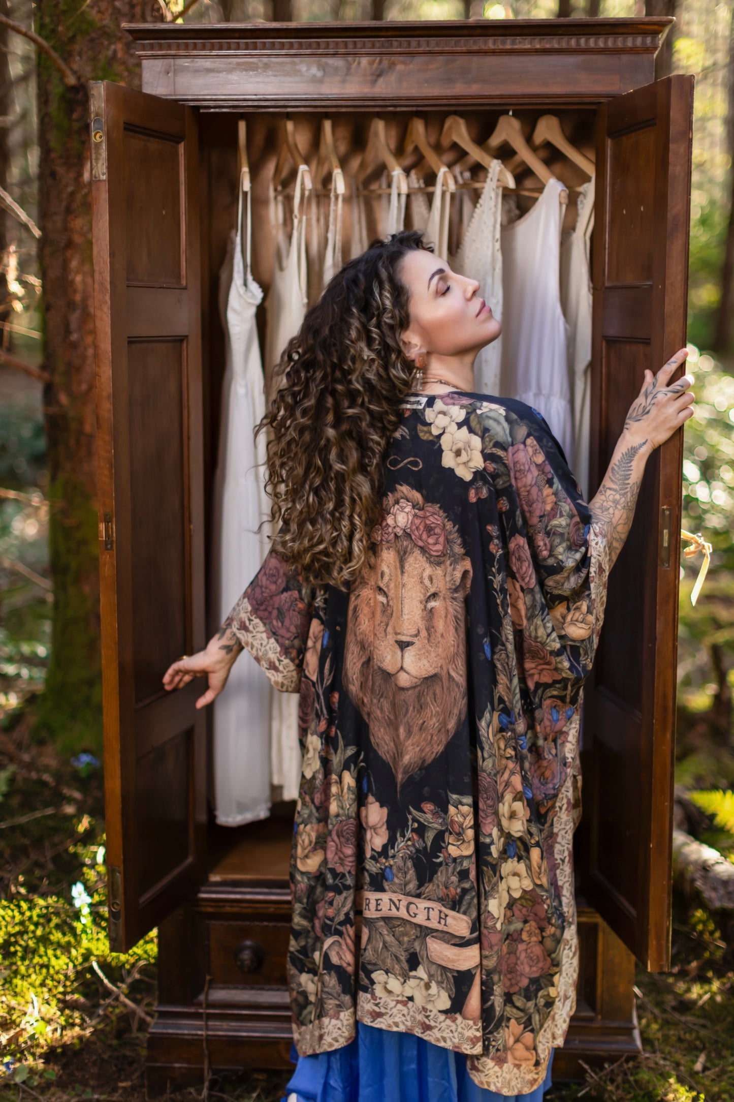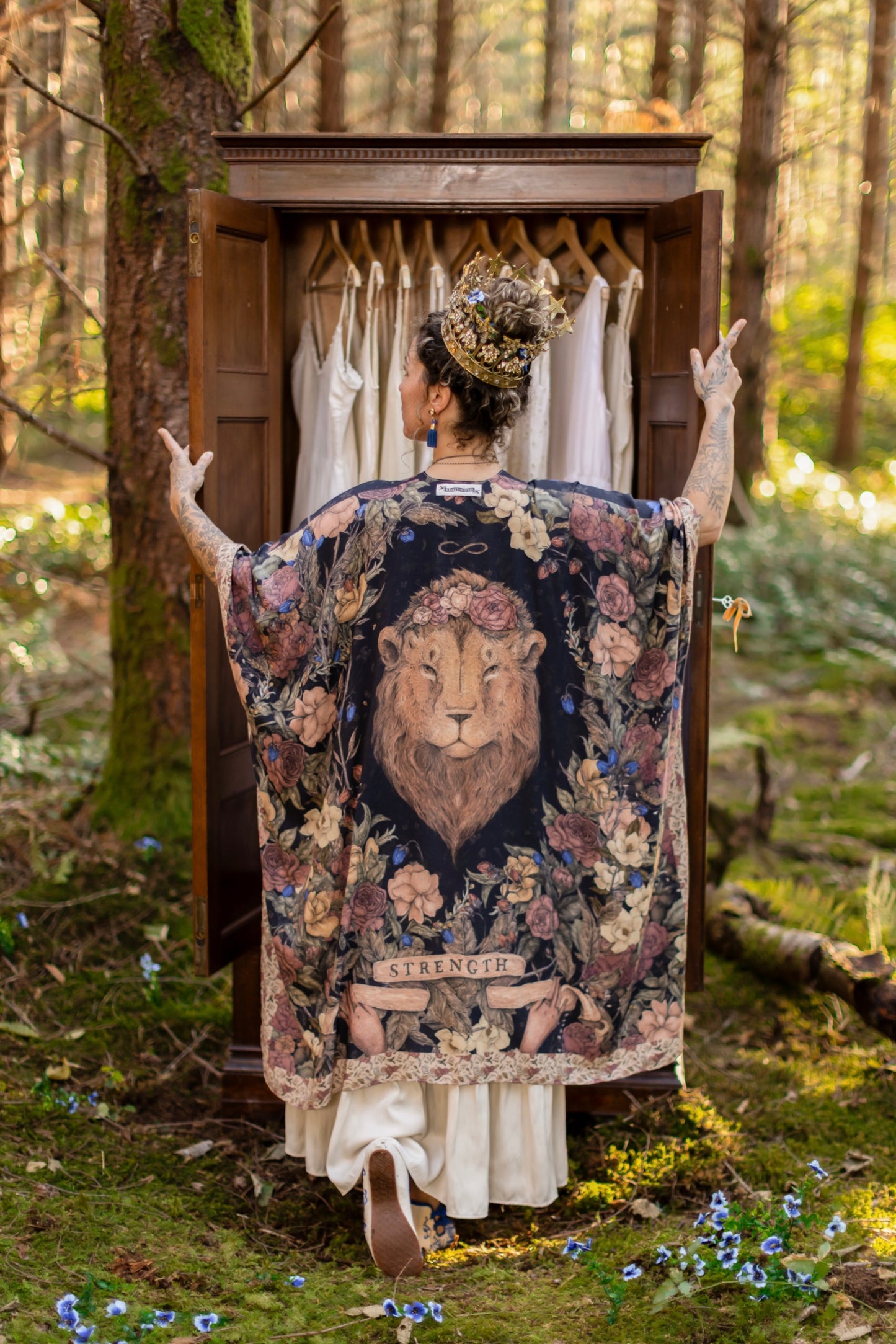 Sometimes we stand quiet and steadfast — and sometimes we roar. Lionheart is a celebration of strength in all its forms: the fierce and the brave, the soft and the graceful. Created in collaboration with renowned artist and illustrator Jessica Roux — whose work is filled with intricate botanicals, timeless creatures, and a sense of quiet wonder — this design captures the heart of courage itself. At the centre of our print is Jessica’s majestic lion crowned with roses, his gaze both powerful and impossibly tender—our nod to Aslan from the pages of Narnia. Around him, roses bloom as symbols of love and friendship, while magnolias weave through the tangle, representing gentleness and resilience. Each flower is meticulously collaged from Jessica’s paintings, creating a beautiful tapestry of her signature style. An infinity symbol arcs above, a sign of boundless strength and eternal love. Beneath the lion, two delicate hands unfurl an antique banner reading Strength, offering the reminder that true bravery is not only loud and fierce, but also soft, steady, and enduring. We invite you to step through the wardrobe, and in to Jessica’s remarkable world.