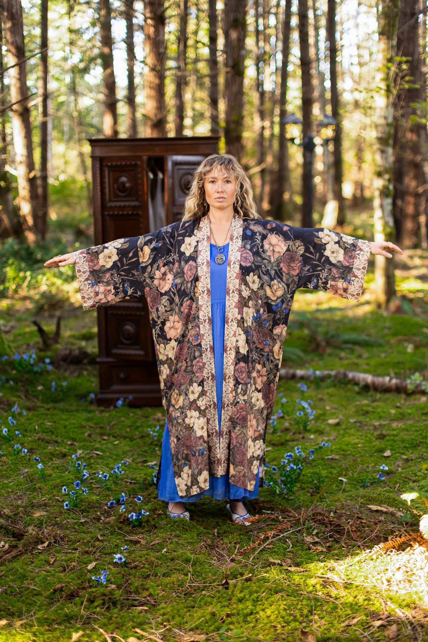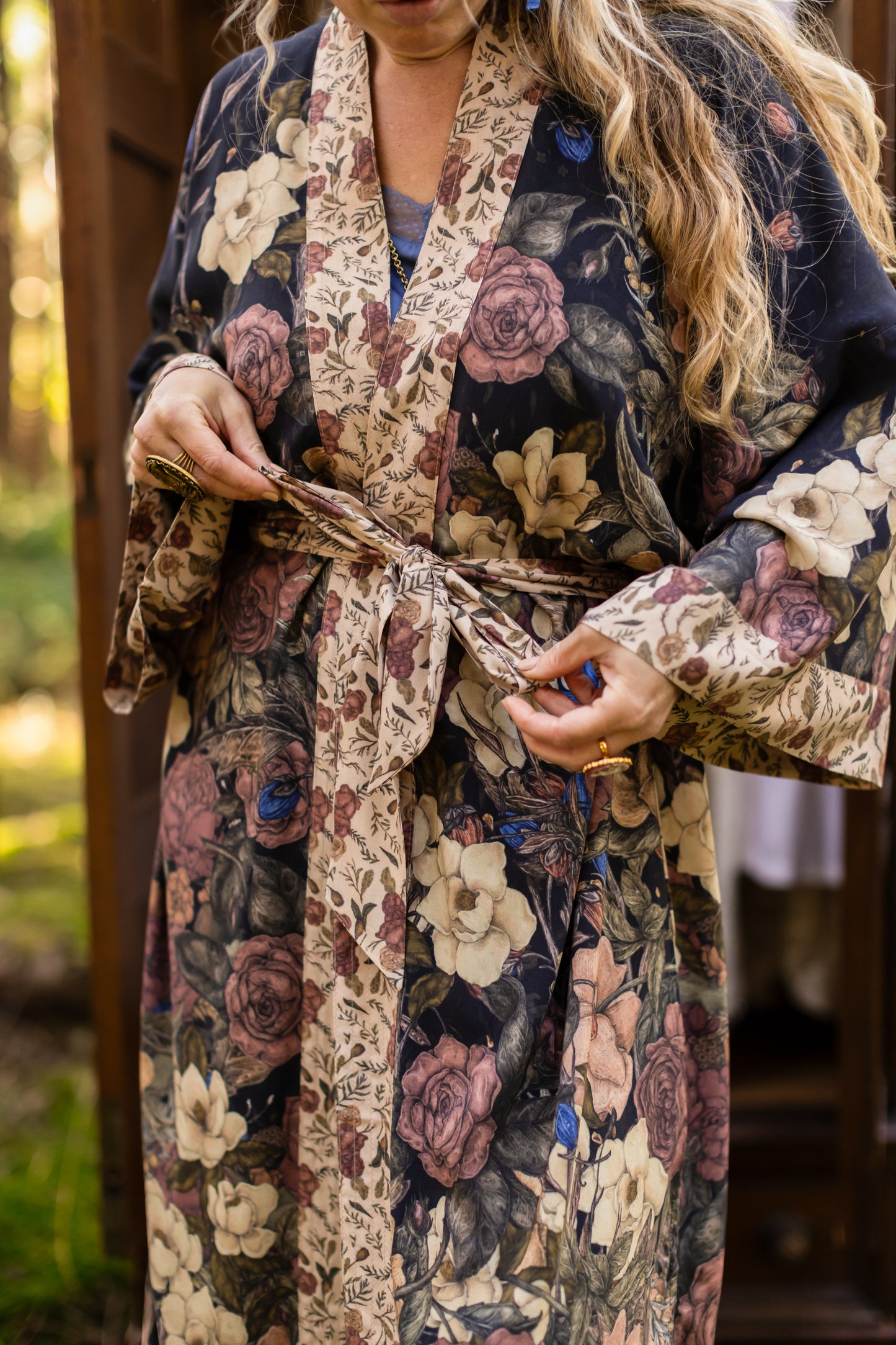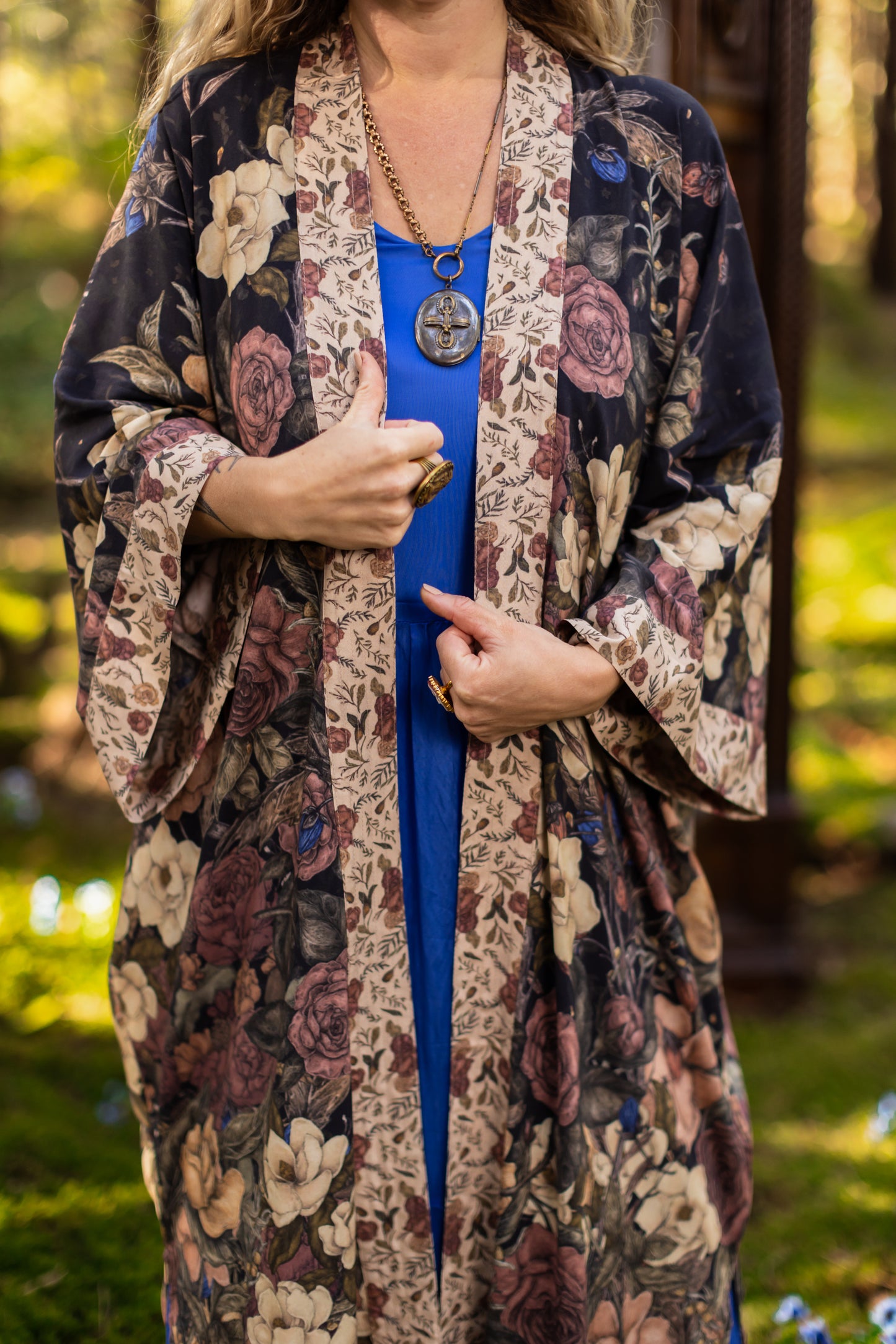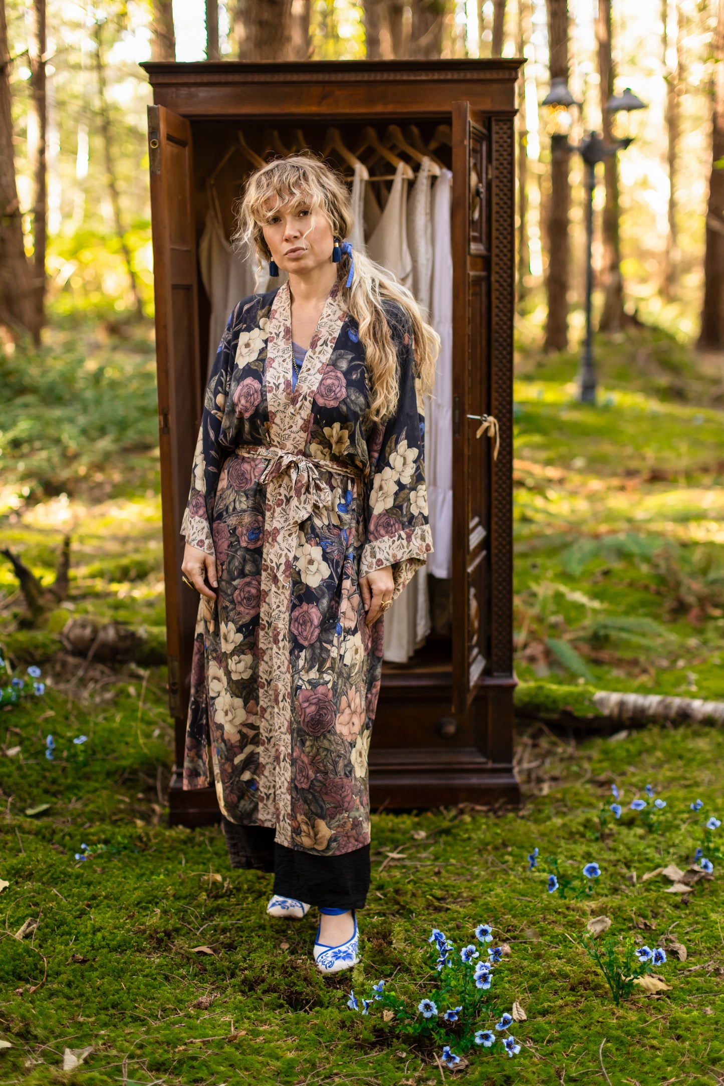 Kimono measurements: length 116cm, width 78 cm (across back, underarm to underarm). Model is 5’3” for reference.
