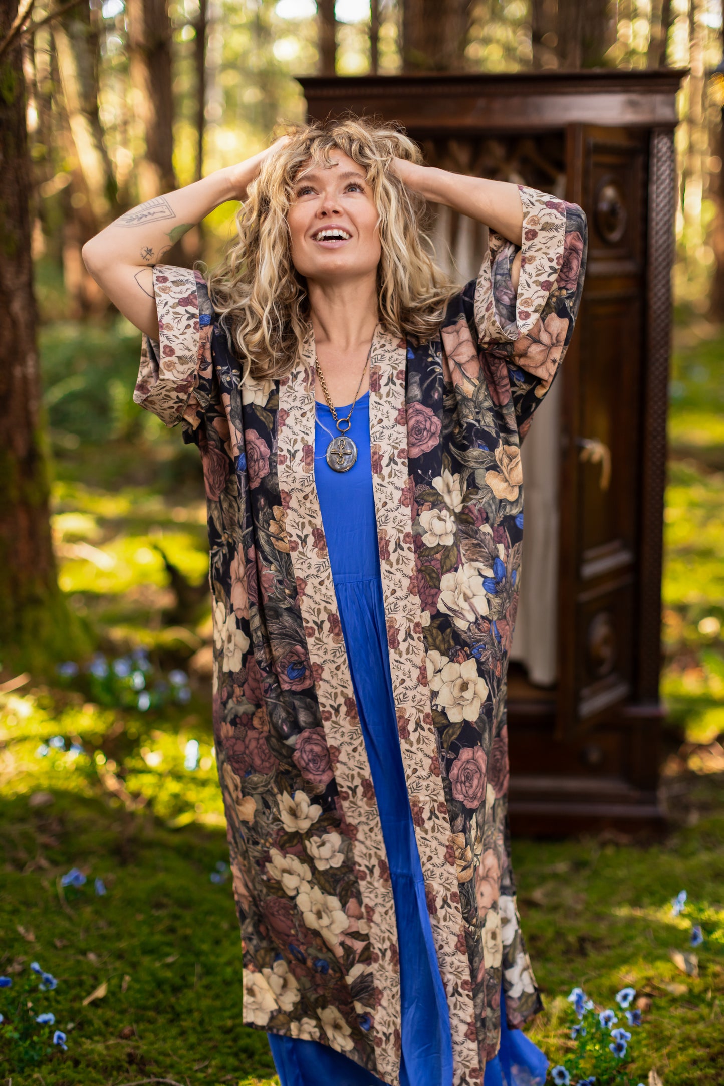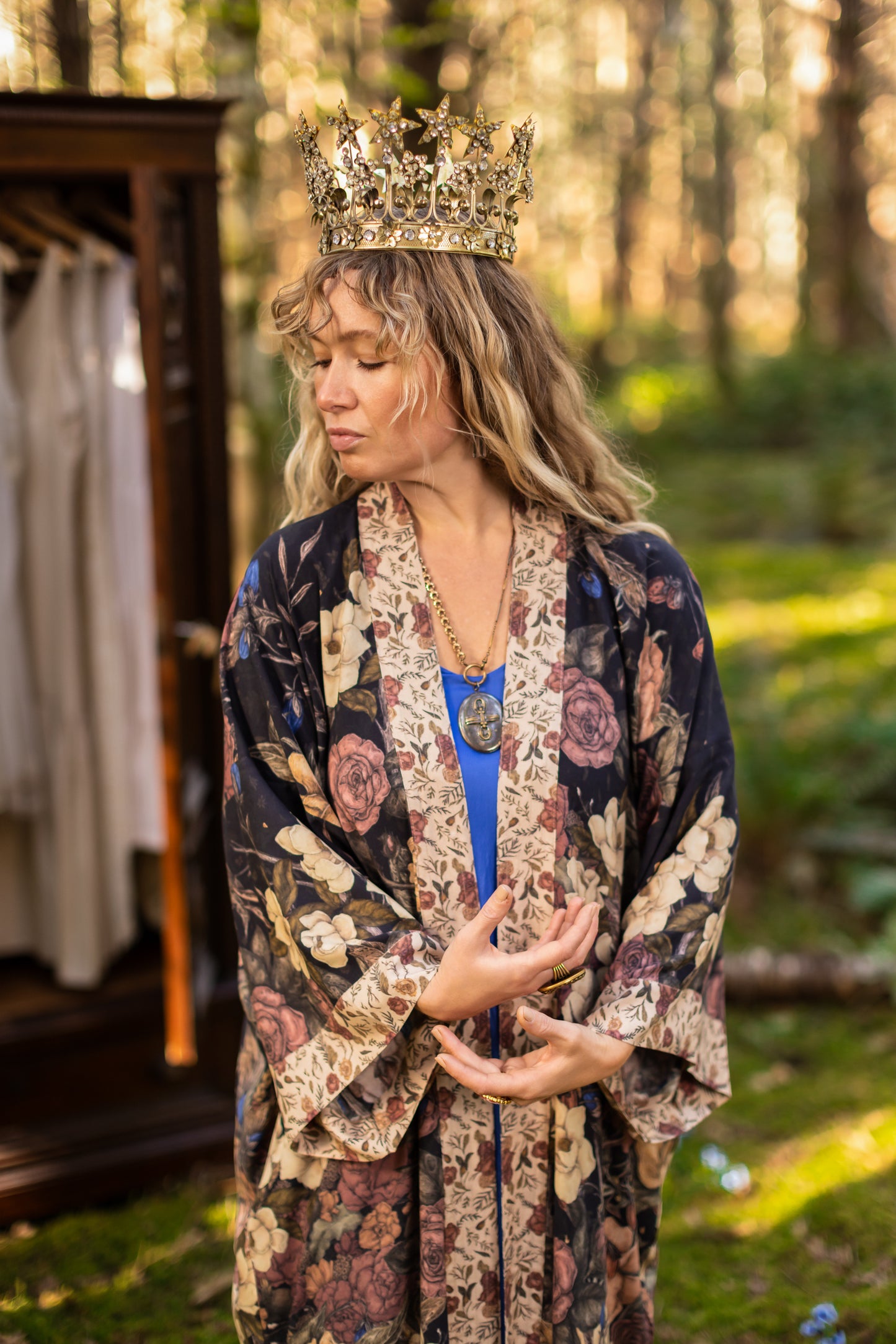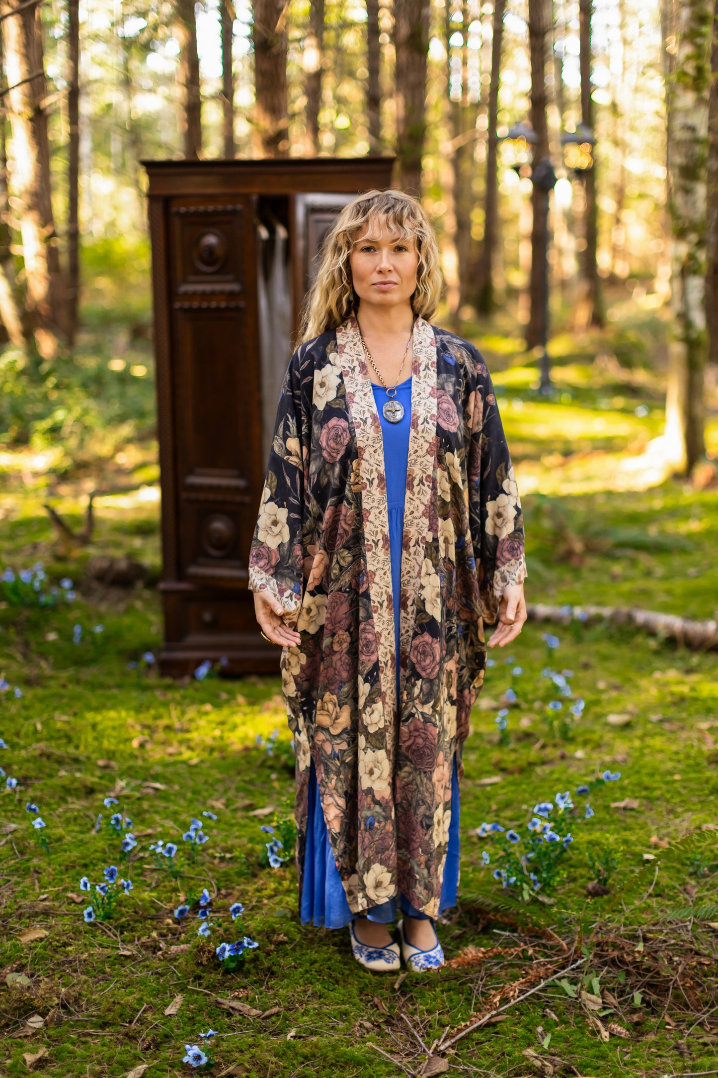 Kimono measurements: length 116cm, width 78 cm (across back, underarm to underarm). Model is 5’3” for reference.