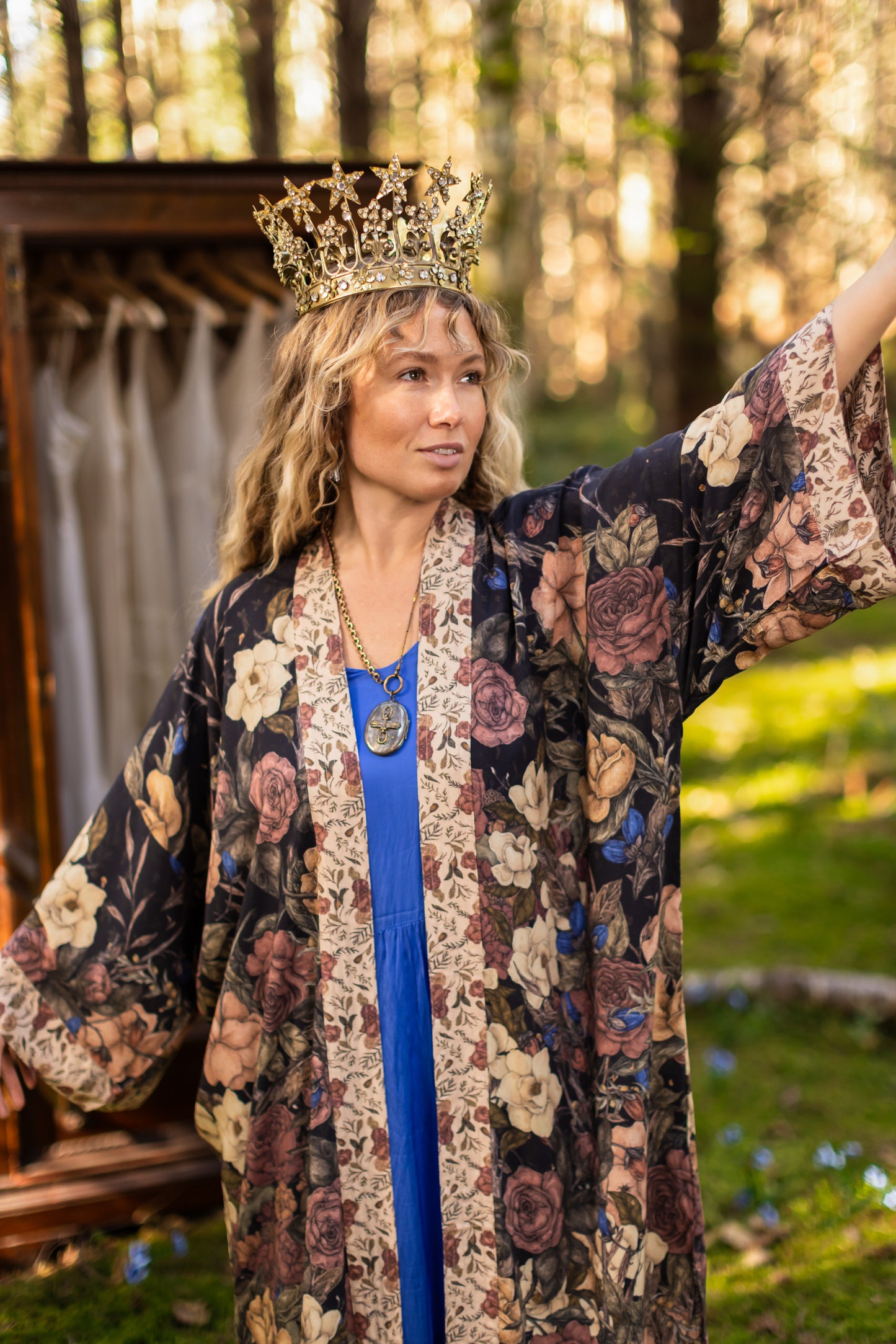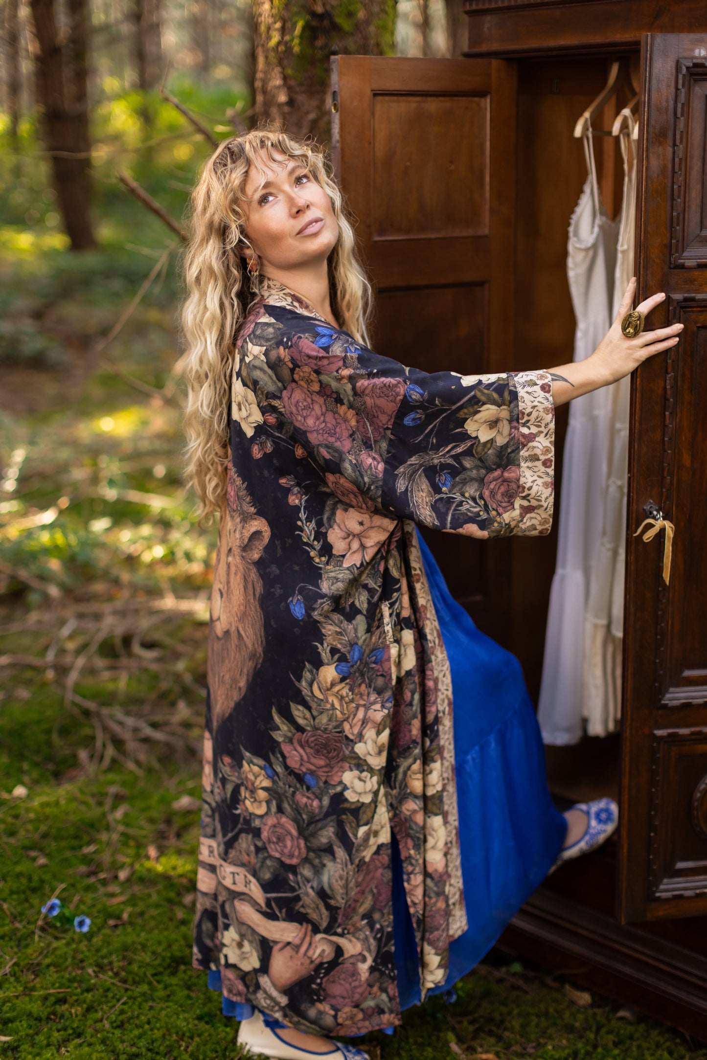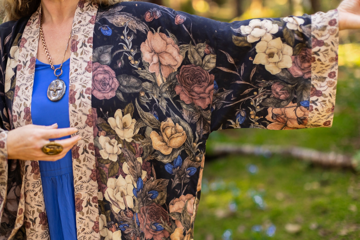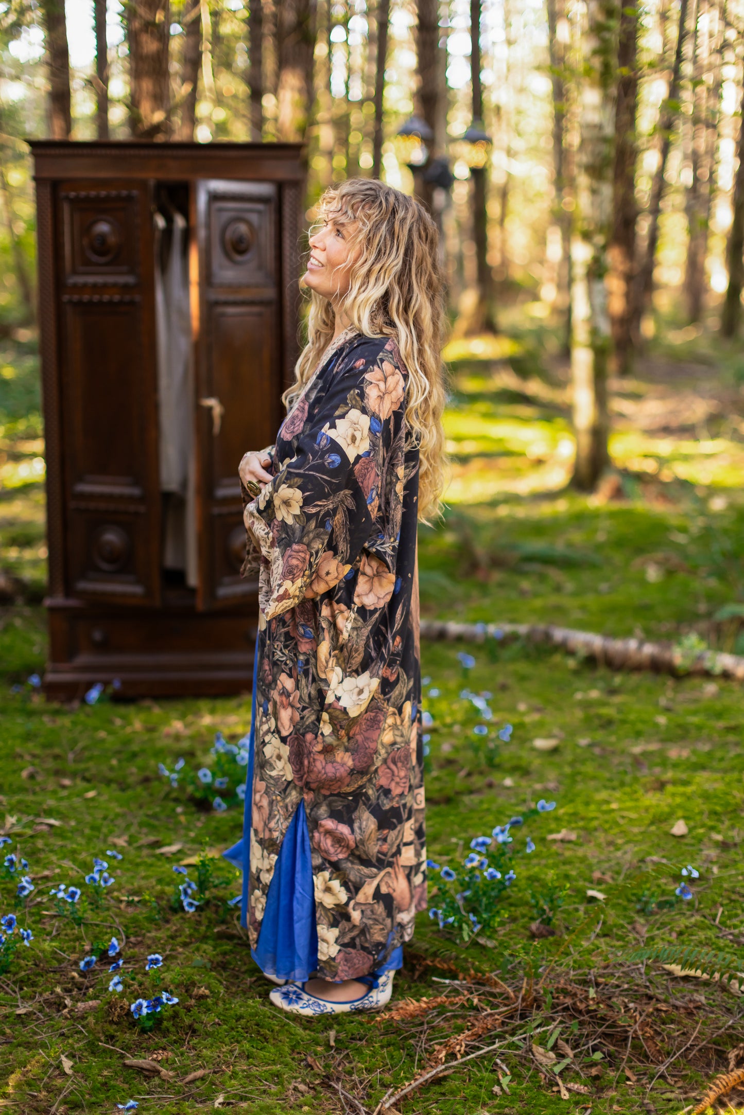 Kimono measurements: length 116cm, width 78 cm (across back, underarm to underarm). Model is 5’3” for reference.
