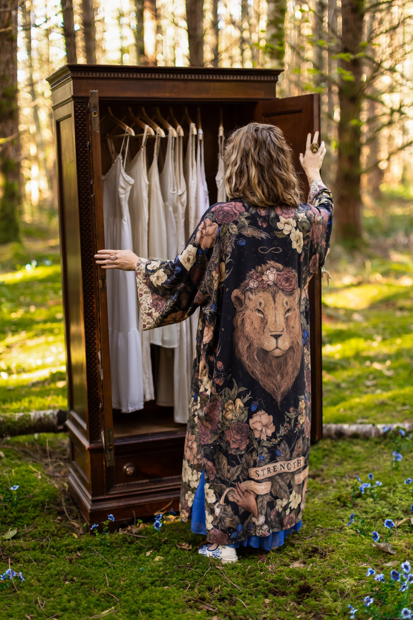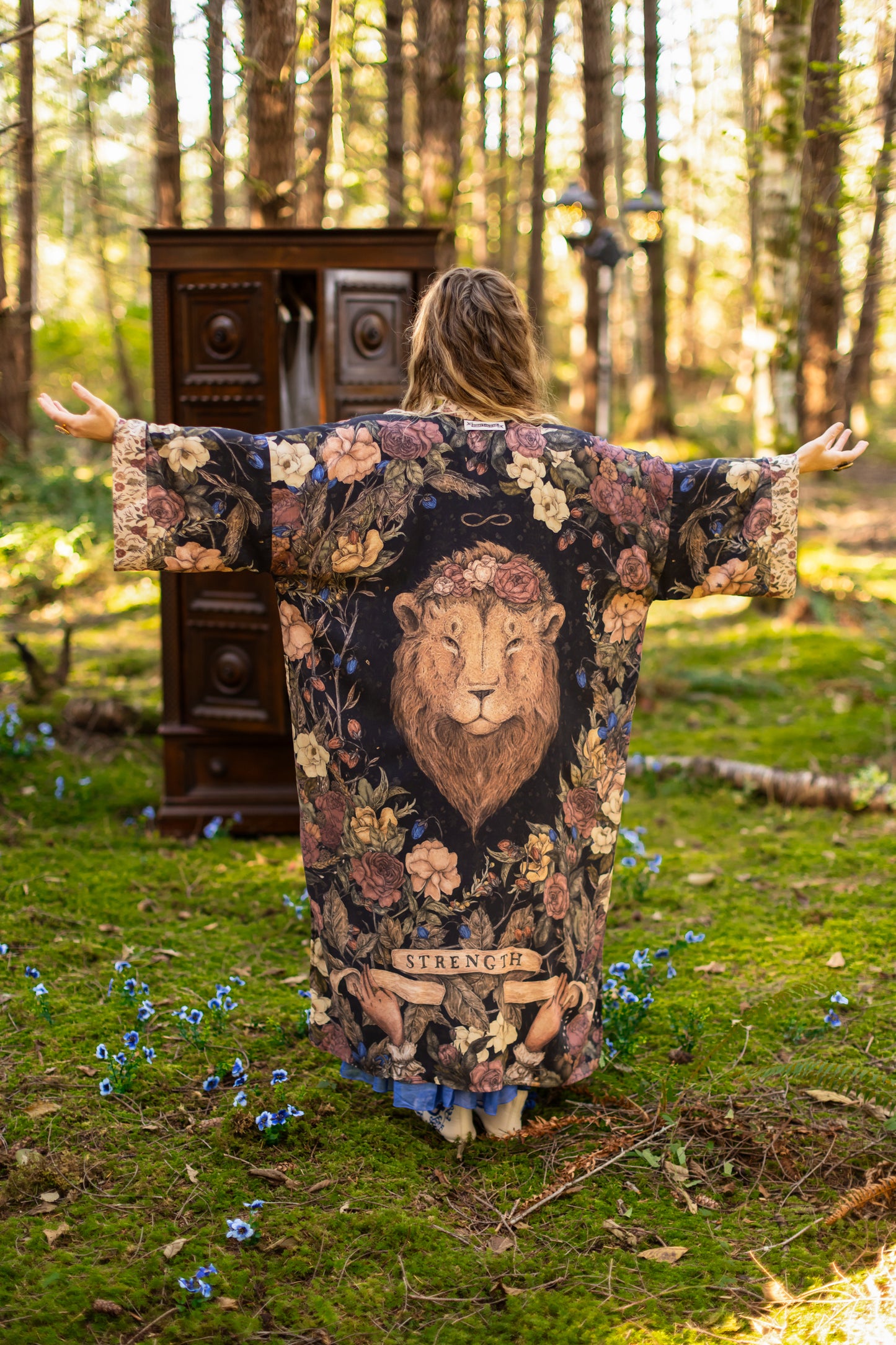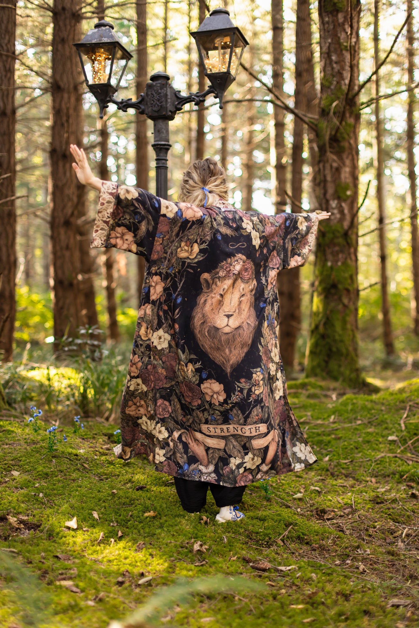 Sometimes we stand quiet and steadfast — and sometimes we roar. Lionheart is a celebration of strength in all its forms: the fierce and the brave, the soft and the graceful. Created in collaboration with renowned artist and illustrator Jessica Roux — whose work is filled with intricate botanicals, timeless creatures, and a sense of quiet wonder — this design captures the heart of courage itself. At the centre of our print is Jessica’s majestic lion crowned with roses, his gaze both powerful and impossibly tender—our nod to Aslan from the pages of Narnia. Around him, roses bloom as symbols of love and friendship, while magnolias weave through the tangle, representing gentleness and resilience. Each flower is meticulously collaged from Jessica’s paintings, creating a beautiful tapestry of her signature style. An infinity symbol arcs above, a sign of boundless strength and eternal love. Beneath the lion, two delicate hands unfurl an antique banner reading Strength, offering the reminder that true bravery is not only loud and fierce, but also soft, steady, and enduring. We invite you to step through the wardrobe, and in to Jessica’s remarkable world.