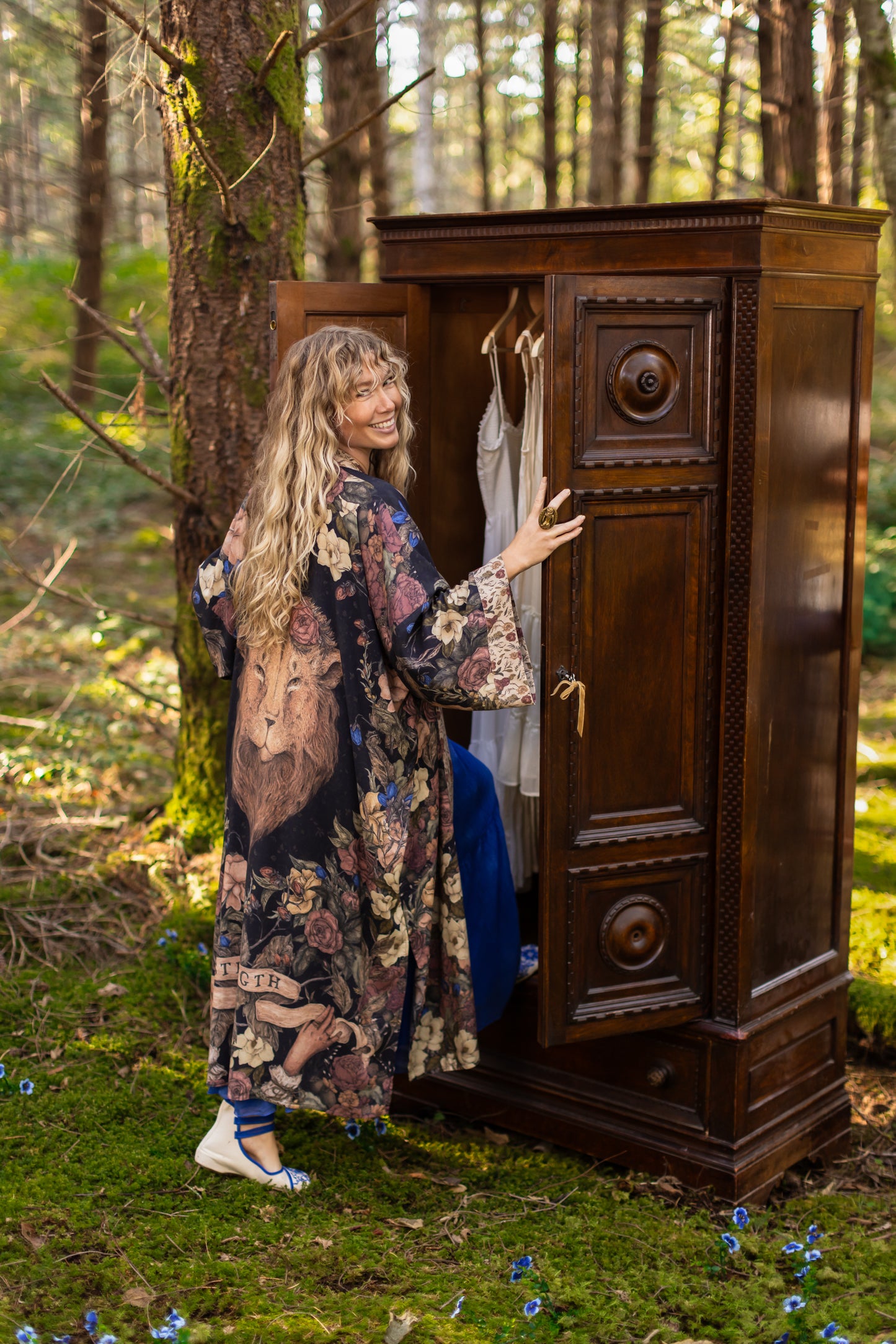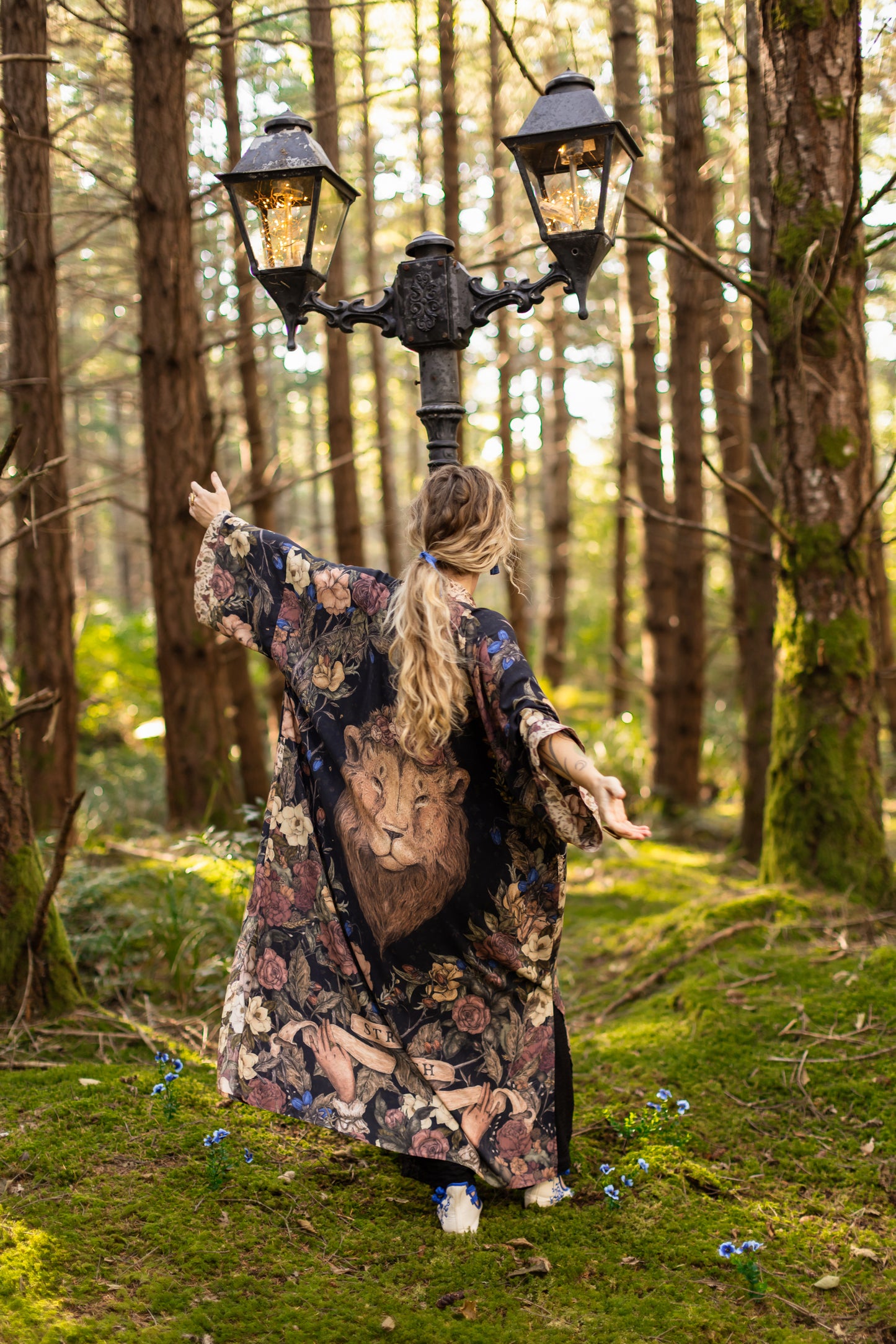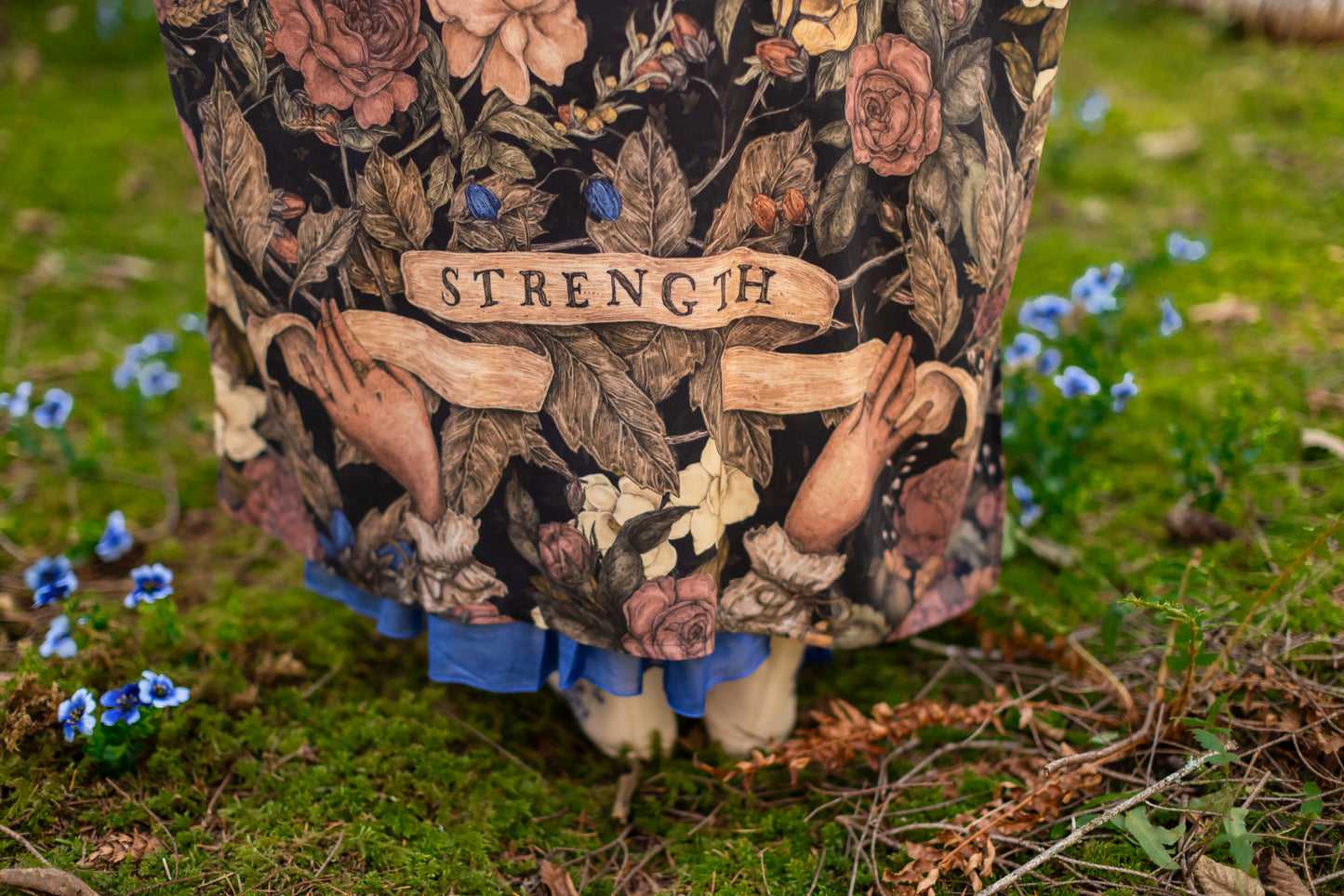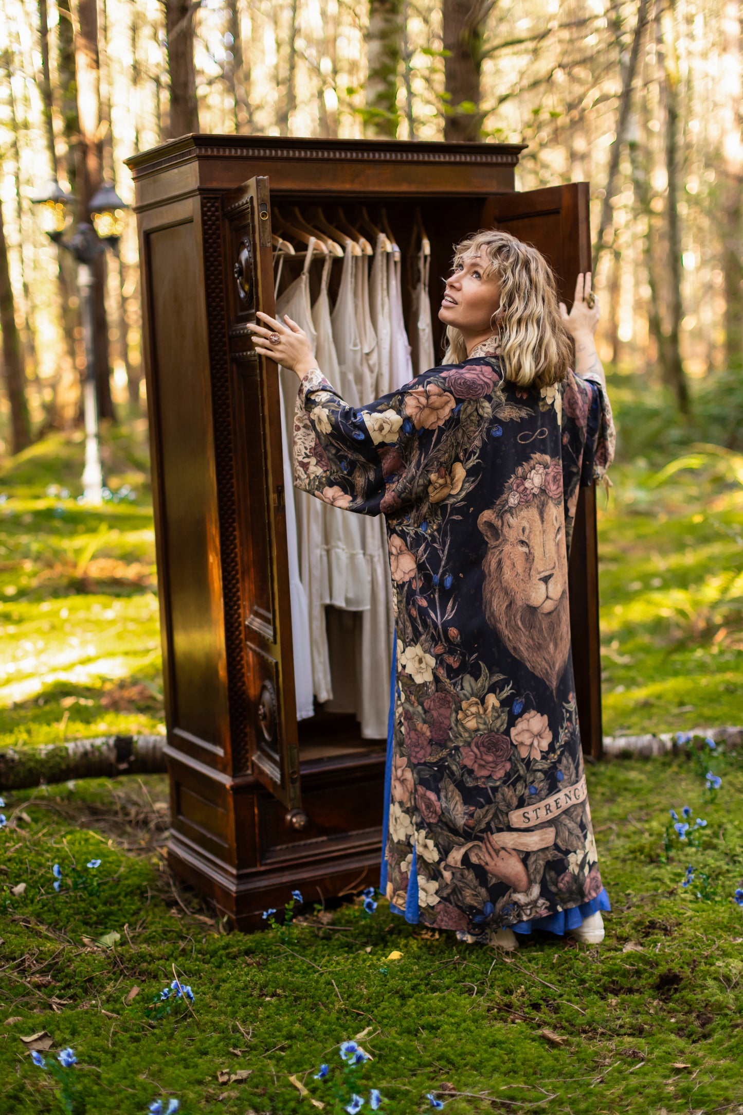 Sometimes we stand quiet and steadfast — and sometimes we roar. Lionheart is a celebration of strength in all its forms: the fierce and the brave, the soft and the graceful. Created in collaboration with renowned artist and illustrator Jessica Roux — whose work is filled with intricate botanicals, timeless creatures, and a sense of quiet wonder — this design captures the heart of courage itself. At the centre of our print is Jessica’s majestic lion crowned with roses, his gaze both powerful and impossibly tender—our nod to Aslan from the pages of Narnia. Around him, roses bloom as symbols of love and friendship, while magnolias weave through the tangle, representing gentleness and resilience. Each flower is meticulously collaged from Jessica’s paintings, creating a beautiful tapestry of her signature style. An infinity symbol arcs above, a sign of boundless strength and eternal love. Beneath the lion, two delicate hands unfurl an antique banner reading Strength, offering the reminder that true bravery is not only loud and fierce, but also soft, steady, and enduring. We invite you to step through the wardrobe, and in to Jessica’s remarkable world.