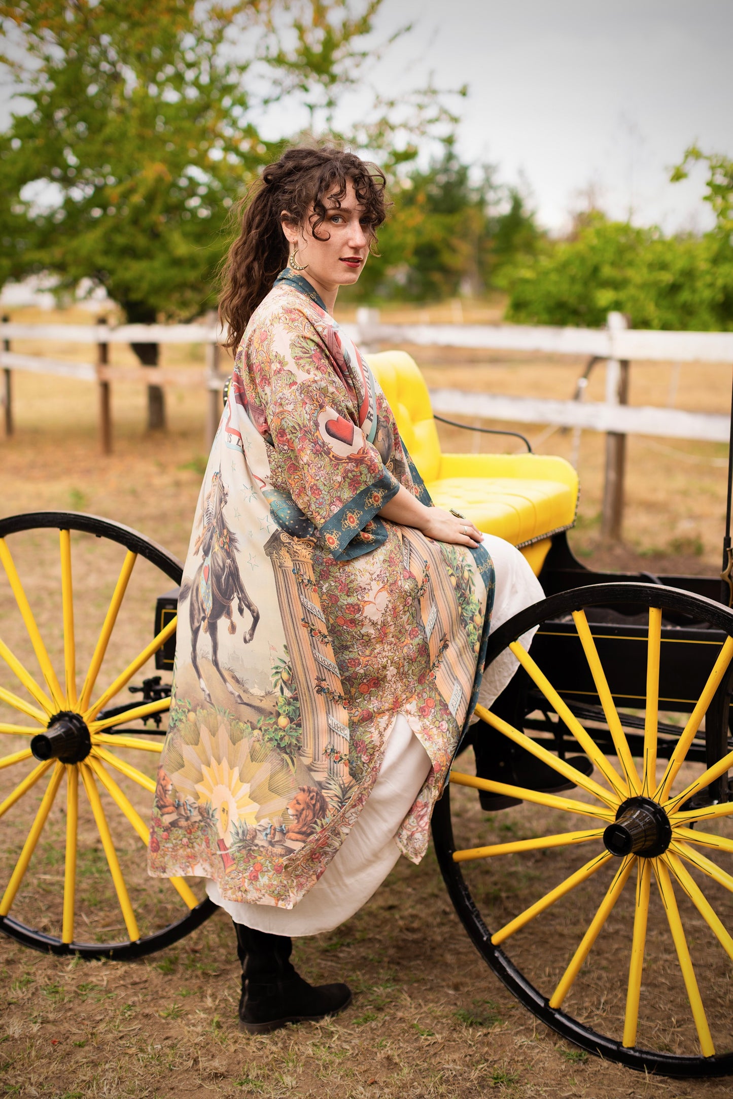 Kimono measurements: length 116cm, width 78 cm (across back, underarm to underarm). Model is 5’8” for reference.