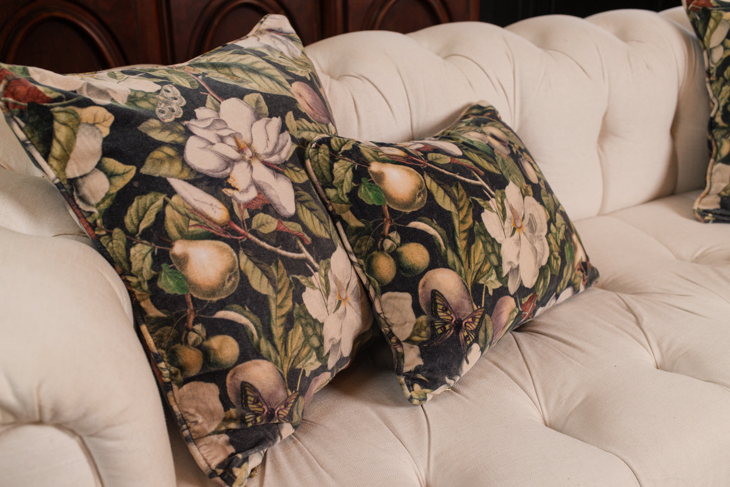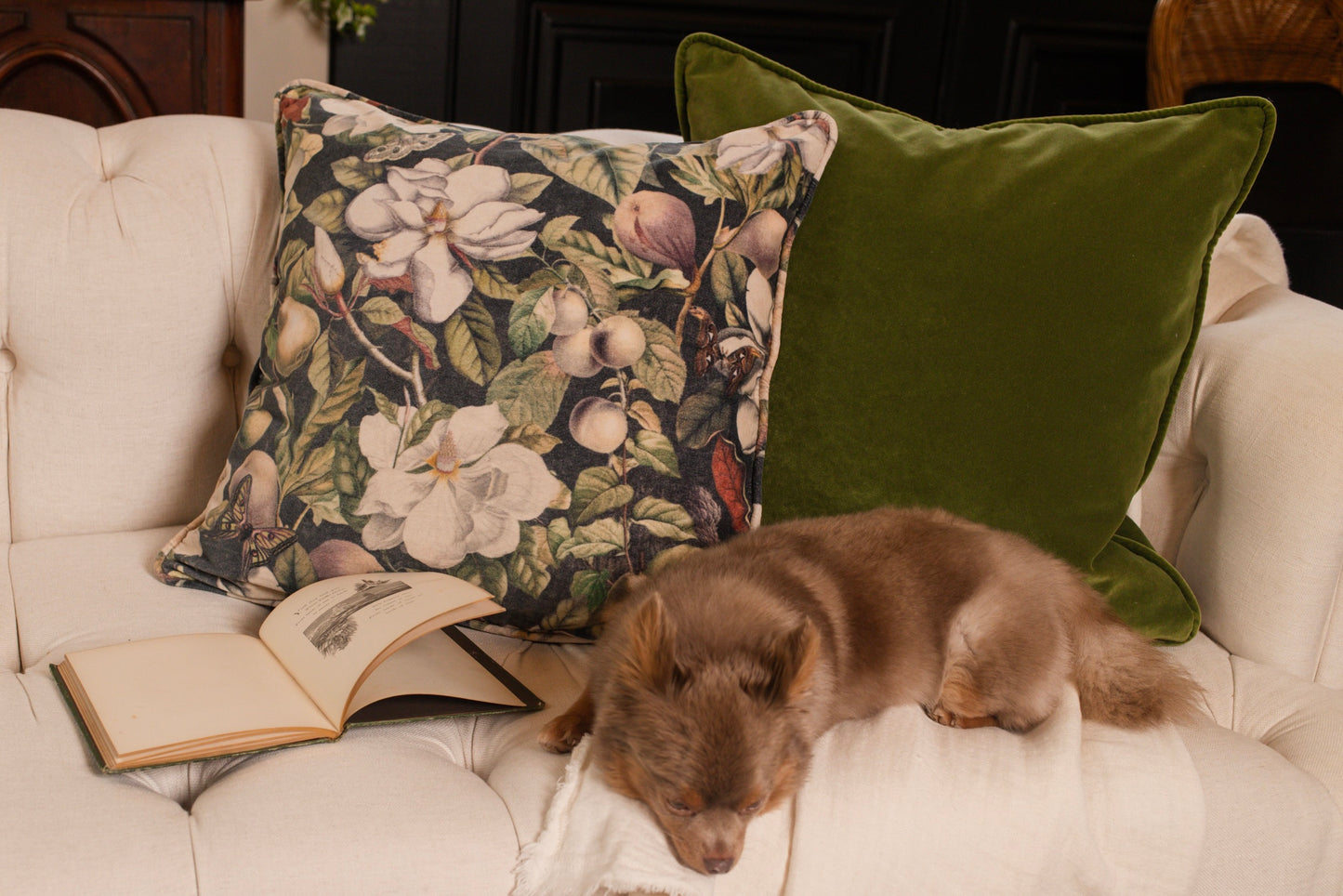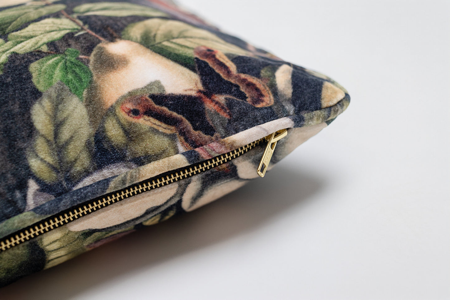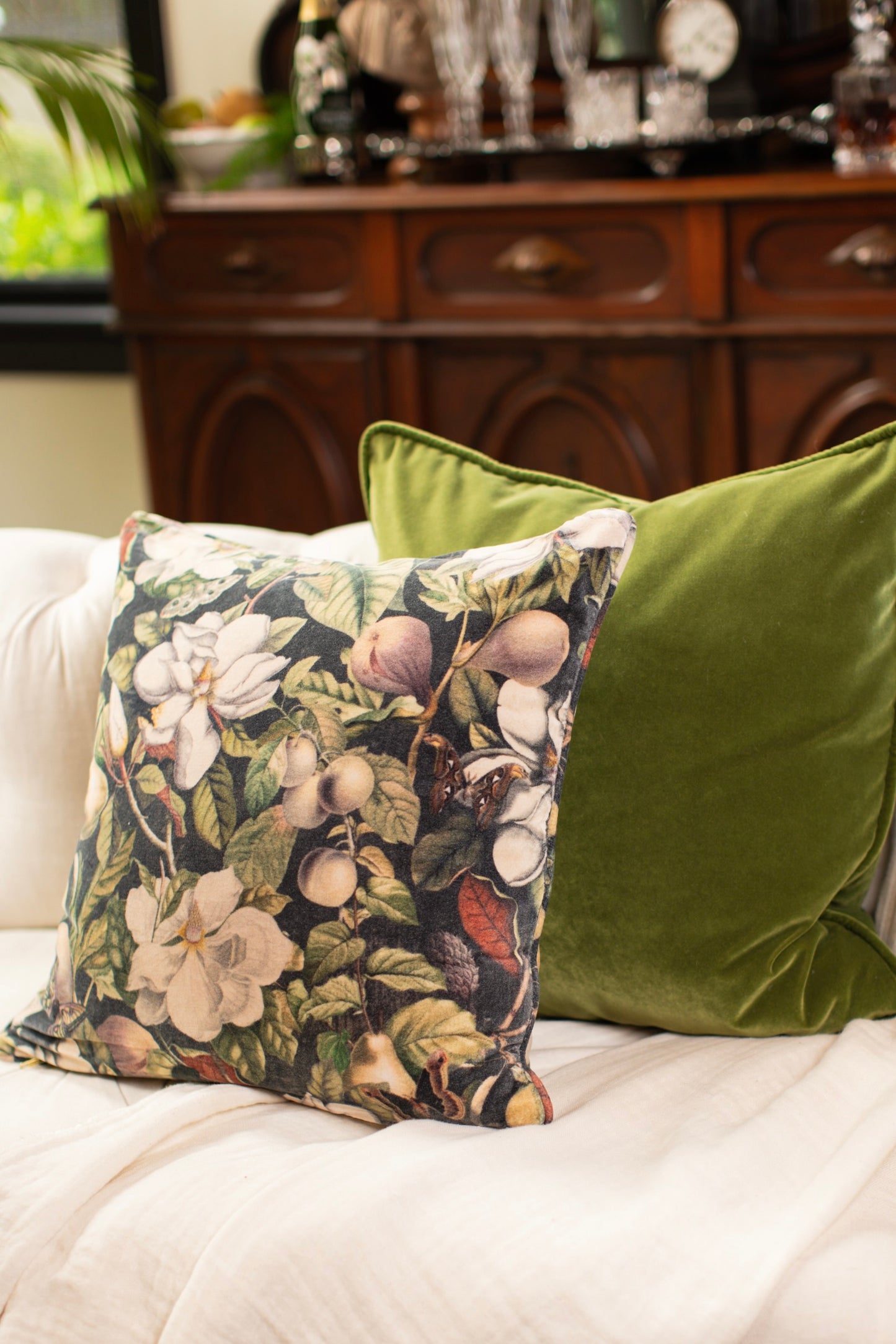 Every society needs a cozy little sanctuary — and ours begins with velvet. Crafted from our signature Celestial Cotton Velvet, each cushion transforms our archival botanical prints into a work of art for your home. The patterns were chosen as much for their beauty as for their quiet versatility — equally at ease in a book-lined library, a sunlit studio, or a cozy reading nook with tea in hand (and yes, we confess, we designed them with our own home in mind). Finished with a classic piped edge and quality gold zipper, these cushions invite you to linger a little longer — to read one more page, pour one more cup, dream one more dream. Welcome to The Velvet Society, and welcome home.