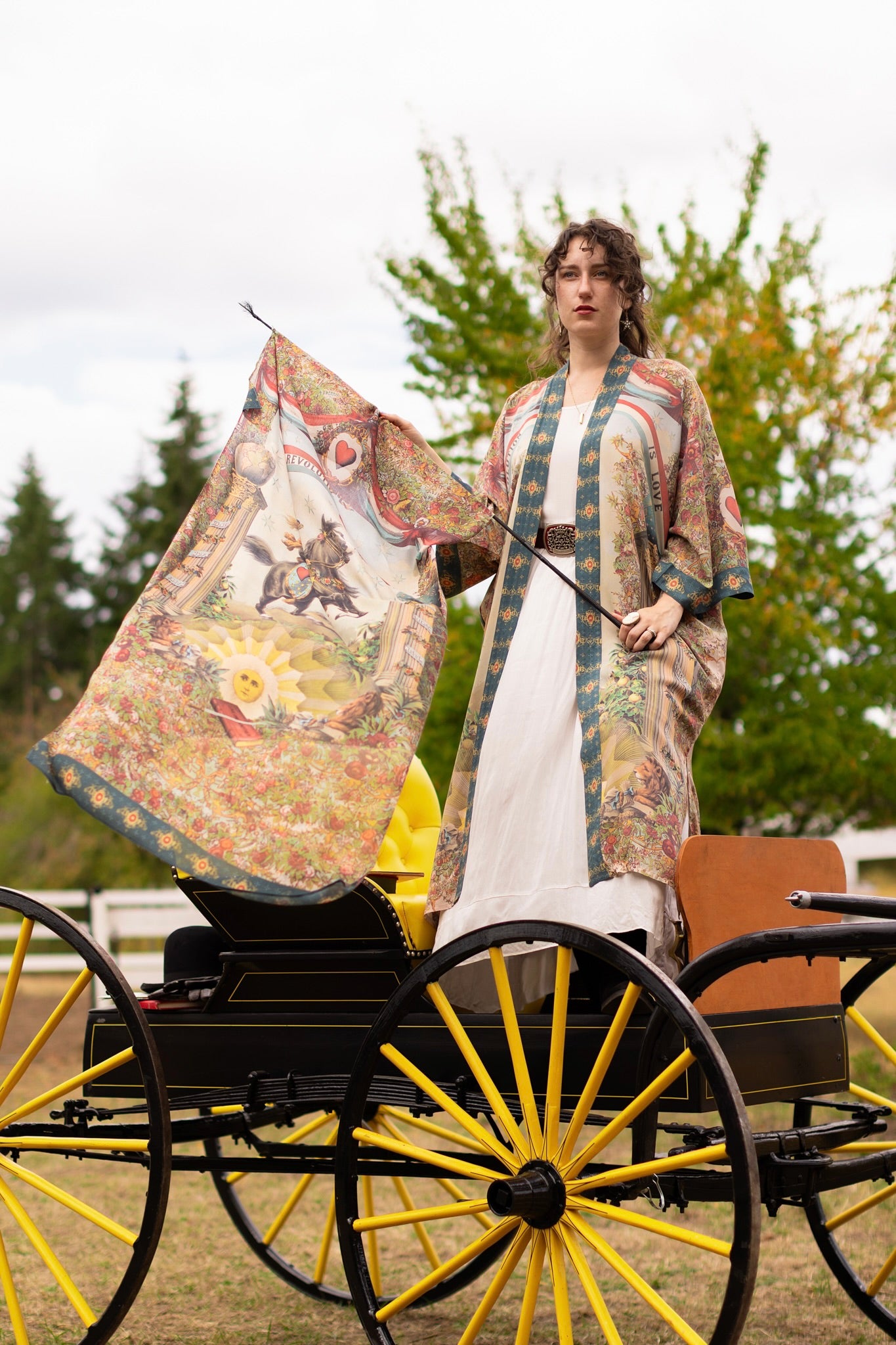Love Revolution dares to say what history so often forgets—that love itself can be the boldest force of all! At its heart is an extraordinary 1892 French hand-coloured poster of a woman astride a rearing horse, her banner flying defiantly in the wind and emblazoned with the words The Revolution is Love. Around her, the design blooms with flowers and rosettes borrowed from artwork of the same era, while French lions rest at her feet, embodying courage and strength. The columns with beribboned banners bearing messages of hope, faith, and beauty are taken from an 1870’s lithograph, as is the little sword and antique book etched with the timeless words: love one another. Rendered in vintage hues of faded red, sunwashed blue, soft green, and aged ivory, Love Revolution carries the romance of something both timeless and quietly radical. Every detail breathes with the idea that beauty, hope, and love are not fragile things—they are forces, capable of transforming the world one fearless heart at a time. Long live the revolution :)
