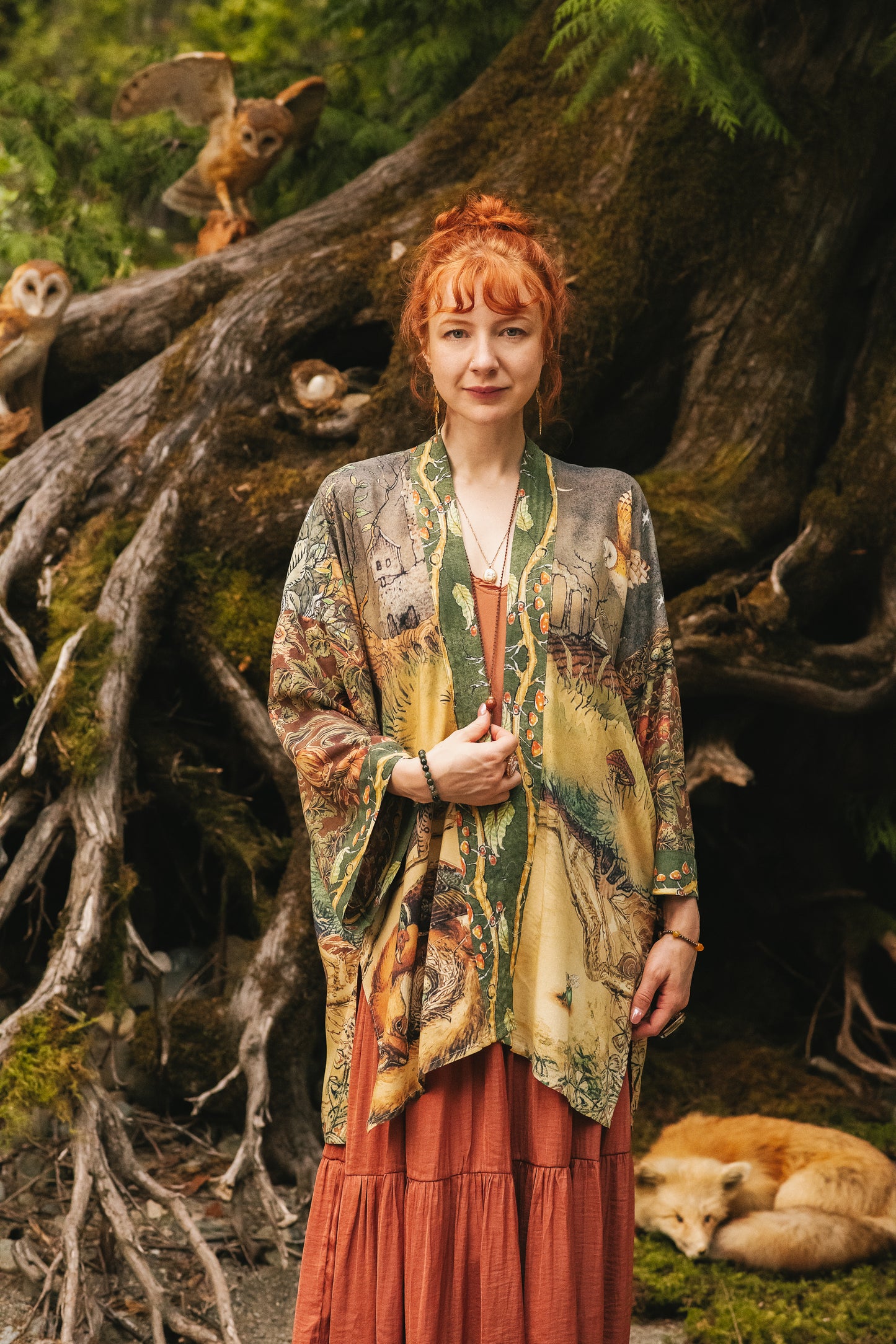 With its deep greens, warm glowing earth tones, and the hush of night, Woodland Wisdom speaks to the magic that unfolds when we nurture instead of harm, protect instead of fear, and choose to love one another—creature to creature, heart to heart.